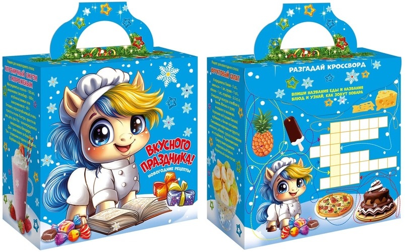 Упаковка из глянцевого картона с заданиями.