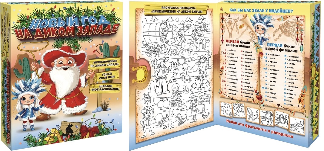 паковка в форме книги. Раскраска-находилка,